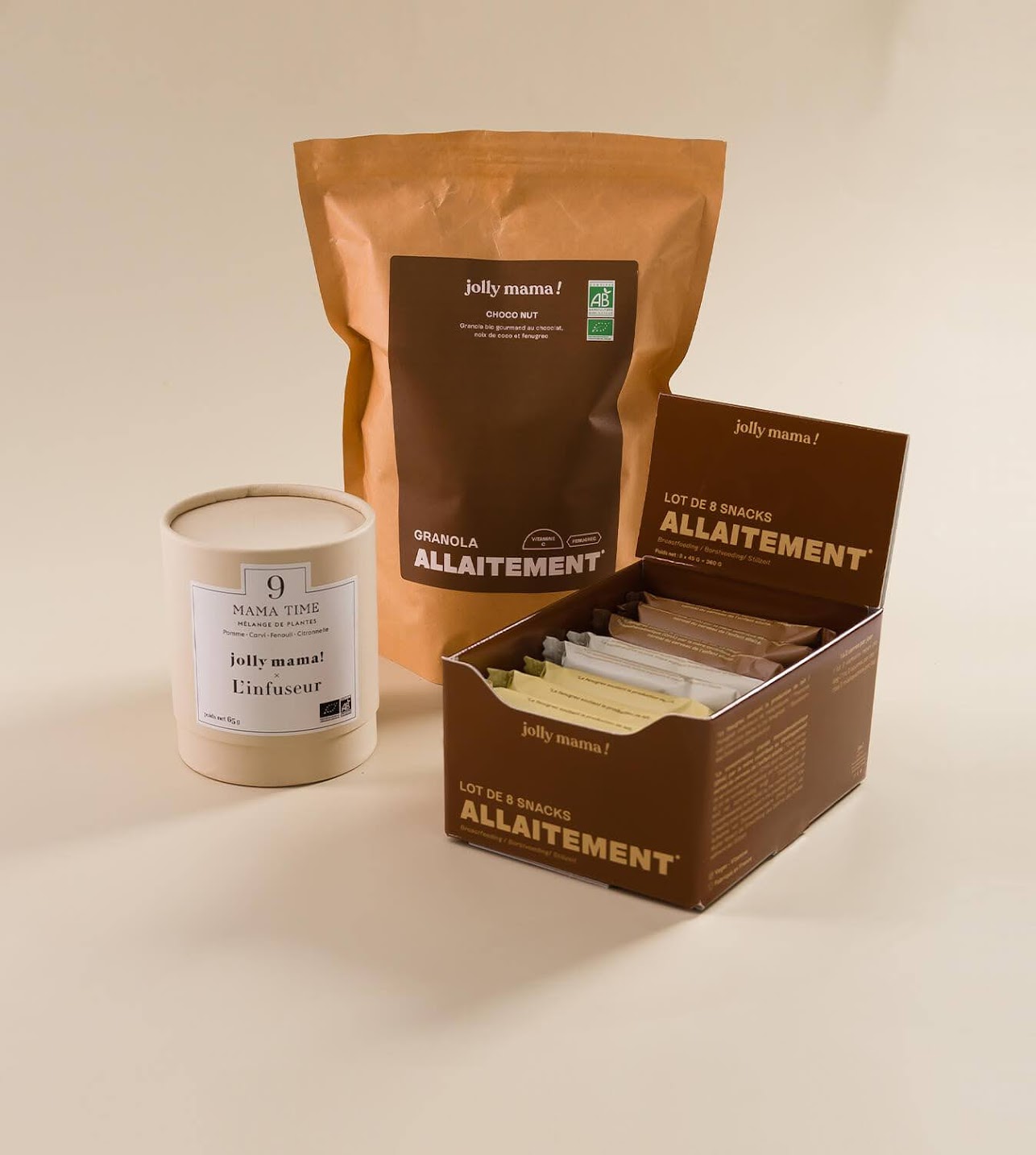 Nous avons mentionné Jolly Mama en introduction avec qui nous collaborons à l’occasion de la semaine suisse de l’allaitement. Cette marque de snacks bios et sains pour les jeunes mamans (mais aussi les femmes enceintes) est un compagnon idéal pendant votre allaitement. Contenant, entres autres, du fenugrec, les carrés Jolly Mama favorisent la montée de lait. Ils sont également bourrés de vitamines et de minéraux et sont délicieux.