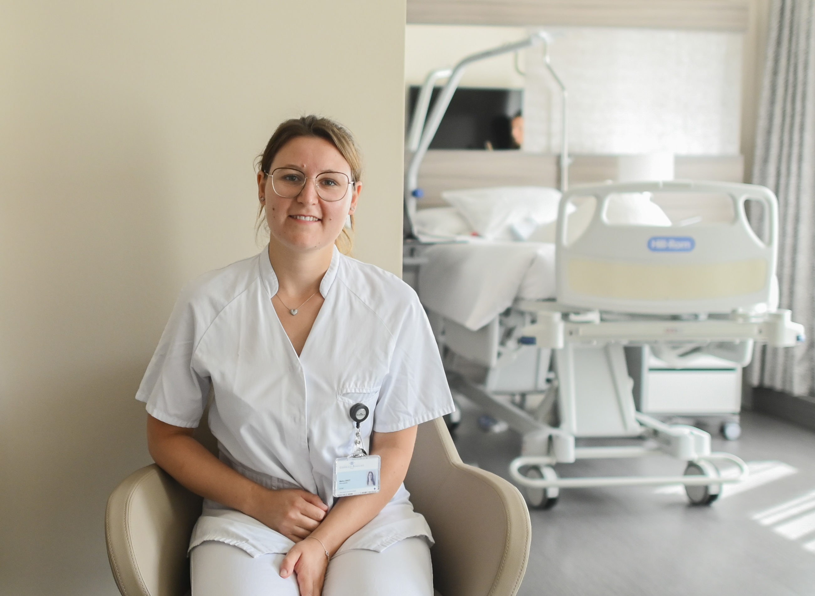 Je m’appelle Maëva, j’ai 25 ans et je suis aide-soignante depuis 5 ans. J’ai rejoint l’équipe de la Clinique Générale-Beaulieu il y a bientôt 1 an. Avant, je travaillais avec les personnes âgées soit 2 tranches d’âge complètement opposées mais qui ont en commun le besoin de soins, d’écoute, de présence et de bienveillance.