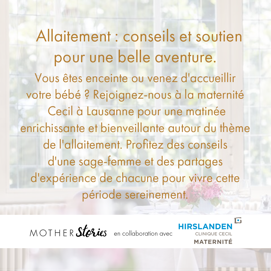 À l’occasion de la semaine suisse de l’allaitement du 16 au 22 septembre, nous vous invitons à une matinée enrichissante et bienveillante entre Mothers (to be) mardi 10 septembre. Nous parlerons de la mise au sein, des conseils pour un allaitement réussi et du sevrage pour un retour au travail serein.